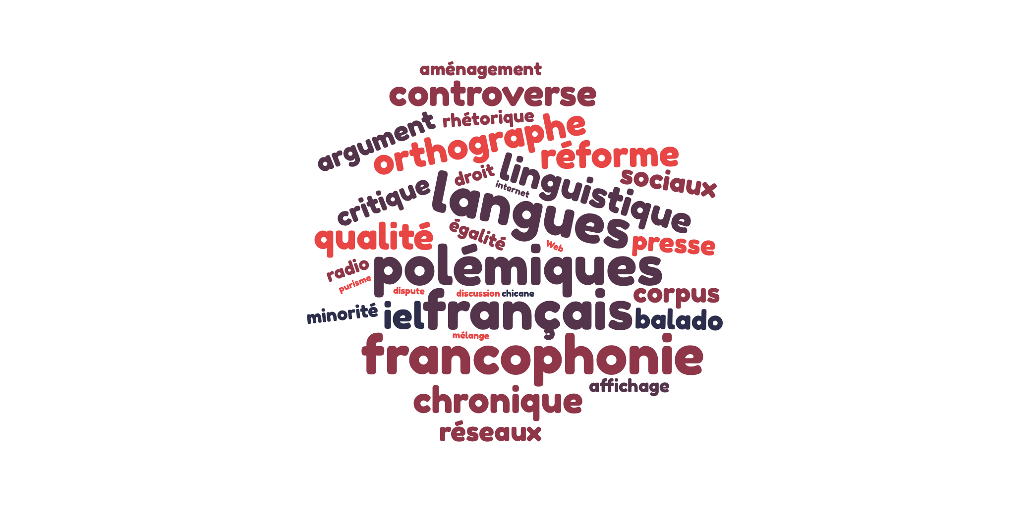 - Des relations entre espaces francophones : Si les espaces francophones peuvent être pris comme des écosystèmes discursifs en eux-mêmes, nous encourageons les propositions qui examinent leur relation médiatique et discursive autour de polémiques linguistiques transfrontalières (ex. écriture inclusive; langue des jeunes);