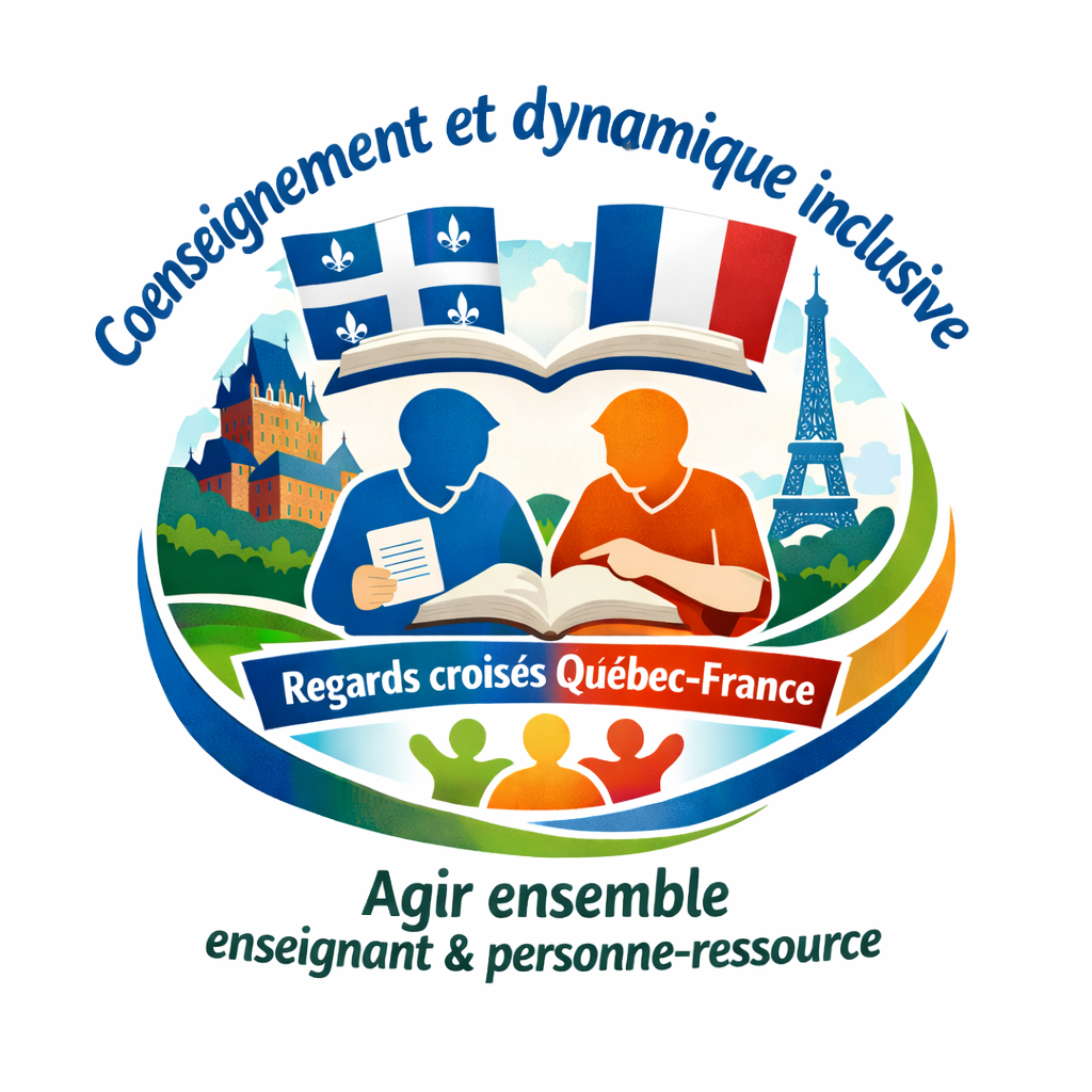 La dynamique inclusive est un enjeu majeur des systèmes éducatifs français et québécois, où la collaboration entre personnes professionnelles dont le coenseignement (Friend & Cook, 2007 ; Tremblay, 2012) constitue un levier pour répondre aux besoins diversifiés des élèves (Granger et al., 2022). Celui-ci peut – entre autres - être mis en œuvre par une personne enseignante régulière/ordinaire et une Personne Ressource (PR). En France, depuis 2017, les personnes enseignantes spécialisées exercent la fonction de personne-ressource pour l’éducation inclusive (PR-EI). Leur rôle est de soutenir la communauté éducative dans son ensemble pour développer des pratiques inclusives et le coenseignement est une possibilité pour y parvenir (Midelet et Leroyer, 2023, 2025). Au Québec, la personne-ressource, qui n’est pas forcément une personne enseignante, apporte son soutien à des élèves et à des personnes enseignantes avec des fonctions d’évaluation, d’orthopédagogie et de coordination. Des travaux comparatifs (Granger, Toullec-Théry, Bourdon, 2023) montrent des convergences (valeurs d’équité), des ambiguïtés à propos de l’identité professionnelle de la personne ressource tout en soulignant la charge de travail engendrée par cette fonction et le manque de temps pour penser et mettre en œuvre cet agir ensemble. Granger et al. (2022) pointent aussi la nécessité de développer un environnement capacitant pour un coenseignement efficace, et soulignent l’importance de la coplanification et de la flexibilité des rôles. S’y ajoutent la clarté des rôles et une confiance mutuelle mises en évidence par Toullec-Théry et Moreau, 2020. Aussi, nous nous intéresserons aux questions suivantes :Quelles mises en œuvre du coenseignement entre PR et personne enseignante de classe et quelles caractéristiques ? Quels sont les freins et les leviers de cet agir ensemble au service de la réussite de tous les élèves ? Quelles pistes pour la recherche ?