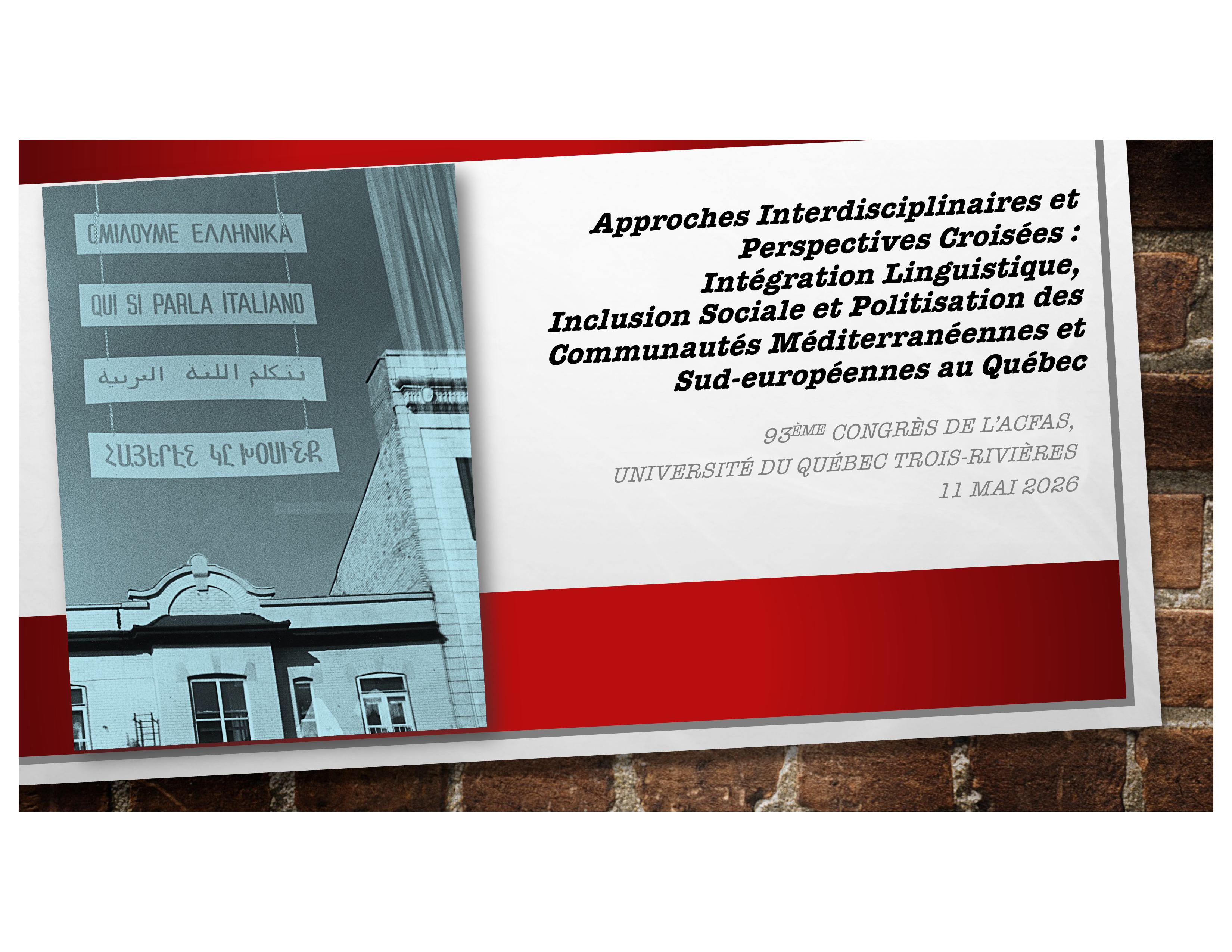 603 - Approches interdisciplinaires et perspectives croisées : intégration linguistique, inclusion sociale et politisation des communautés méditerranéennes et sud-européennes au Québec