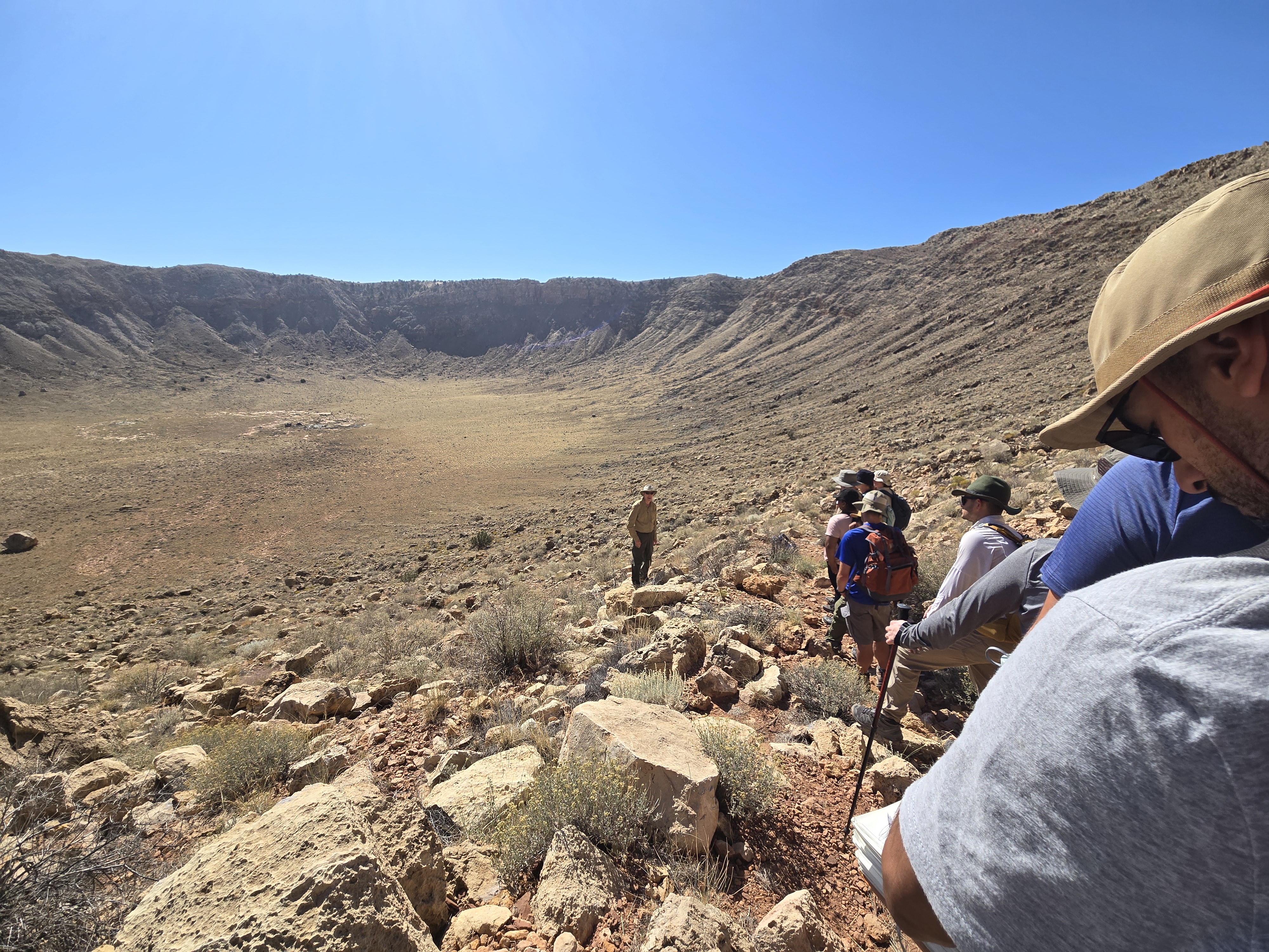 Adolescente, j’avais un intérêt marqué pour la géologie et pour l’observation des constellations et des phénomènes astronomiques. Je ramassais les roches que je trouvais intéressantes et je sortais mon cherche-étoiles sous les ciels clairs, sans nuages. À l’époque, je ne savais pas que des chercheuses et chercheurs se consacraient à l’étude des planètes! De fil en aiguille, au long de ma formation universitaire, j’ai réalisé que je pouvais me diriger vers ce domaine grâce à la professeure Myriam Lemelin, qui étudie la surface de la Lune et de Mars à distance pour soutenir les missions d’exploration spatiale. Mon intérêt pour la recherche dans le domaine des sciences planétaires s’est confirmé grâce à plusieurs opportunités survenues dans les dernières années, dont une formation terrain sur les cratères d’impact, une école d’été à propos de la planète Mars et plusieurs conférences scientifiques.