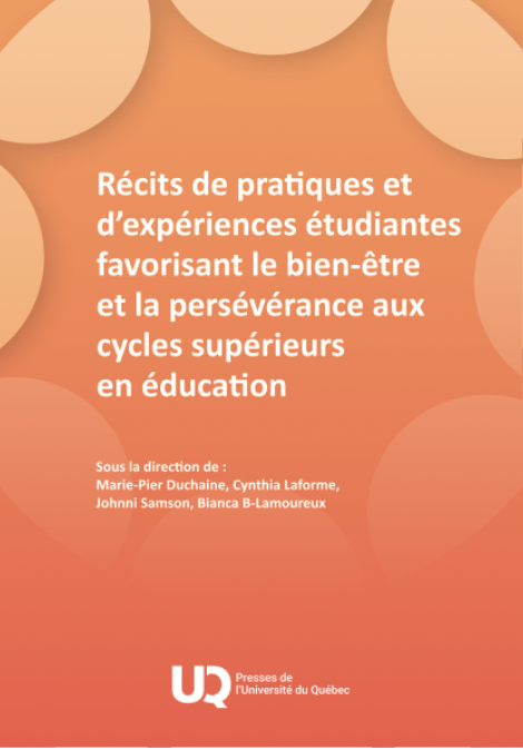 Duchaine, M.-P., Laforme, C., Samson, J. et B-Lamoureux, B. (2024). Récits de pratiques et d’expériences étudiantes favorisant le bien-être et la persévérance aux cycles supérieurs en éducation. Presses de l’Université du Québec. https://www.puq.ca/catalogue/libreacces/recits-pratiques-experiences-etudiantes-favorisant-bien-4330.html